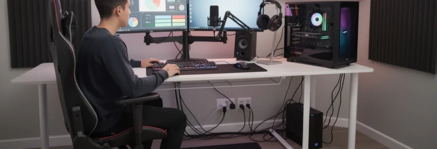 Un setup gaming chambre performant consomme plus d’électricité qu’un simple poste bureautique. Entre le PC, les écrans, l’éclairage, les enceintes et les chargeurs, la gestion du câblage et de l’alimentation électrique devient un enjeu à la fois pratique et sécuritaire. Une bonne organisation dès le départ vous évitera les multiprises en cascade et les risques de surtension.