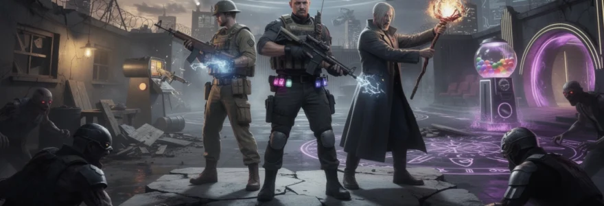 L’innovation majeure de Black Ops III reste toutefois l’introduction des GobbleGums, des consommables aux effets temporaires qui modifient profondément la méta du mode Zombies. Grâce à ce système, les joueurs peuvent personnaliser leur style de jeu avant même de lancer une partie, en choisissant des bonus d’apparition, de réanimation ou d’amélioration d’armes. Cette couche de stratégie supplémentaire rapproche le mode Zombies d’un jeu de cartes ou d’un RPG, où la préparation en amont est tout aussi importante que l’exécution en temps réel.